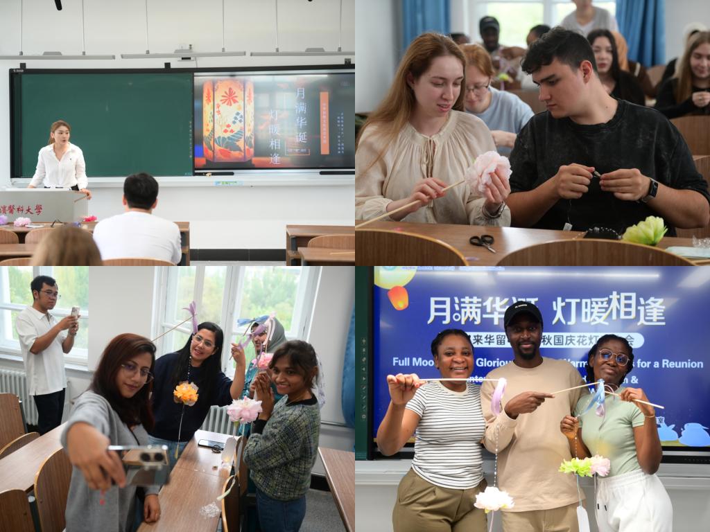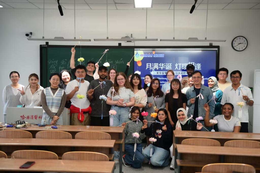 明月寄相思,花灯映团圆。2025年9月29日,在中秋佳节与中华人民共和国国庆双节同庆的温馨时刻,一场别开生面的文化体验活动在外语学馆四楼25号教室暖心上演。本次活动以“月满华诞,灯暖相逢”为主题,由哈尔滨医科大学国际教育学院与哈尔滨师范大学“匠心传韵”辅导员名师工作室联合主办,为来自世界各地的来华留学生带来了一场沉浸式的中华传统文化盛宴。