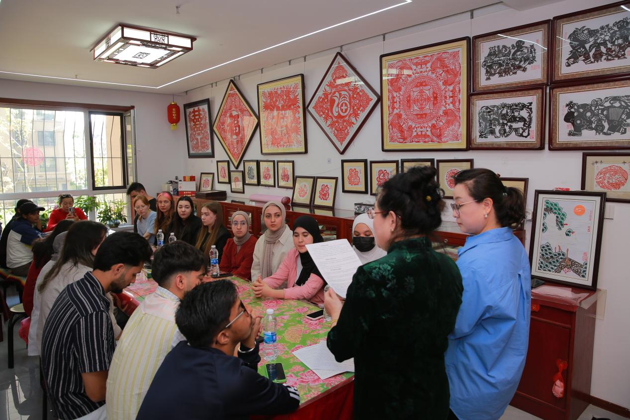 文化交流环节,留学生们围绕“剪纸里的中国文化”展开热烈讨论。摩洛哥的拉赫曼分享说,自己国家也有艺术表达祝福的方式,但剪纸将简单工具与深厚文化结合,令人称奇。法蒂玛结合在华学习经历表示,此前对中国文化的了解多来自课本,此次亲手体验剪纸,拉近了与文化的距离。就像我们学医要了解人体的细节,了解一个国家的文化,也要接触这些最传统、最鲜活的艺术形式。俄罗斯籍的叶戈尔则被剪纸“吉祥寓意”的含蓄温暖打动,更喜爱中国文化。程老师也被留学生们的热情感染,她表示:“看到外国年轻人对剪纸艺术感兴趣,愿意了解背后的文化,我特别开心。非遗不是封存的‘老物件’,需要更多人参与进来,留学生们就是文化交流的桥梁,能让剪纸艺术走向更广阔的世界。”